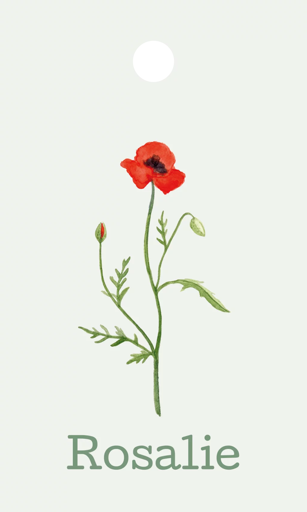 Labeltje (30 x 50 mm) met de naam van je kindje en een illustratie van de geboortebloem van augustus: de klaproos. Voor je doopsuiker of kraamcadeautjes. Kleuren en lettertypes zijn aanpasbaar.