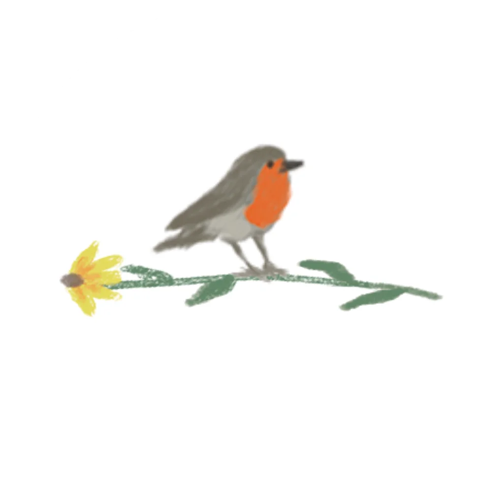 Mooie sluitzegels met een illustratie van een roodborstje en een gele zonnehoed. Je kunt de sluitzegel helemaal naar wens aanpassen. Er zitten 25 sluitzegels op een vel.