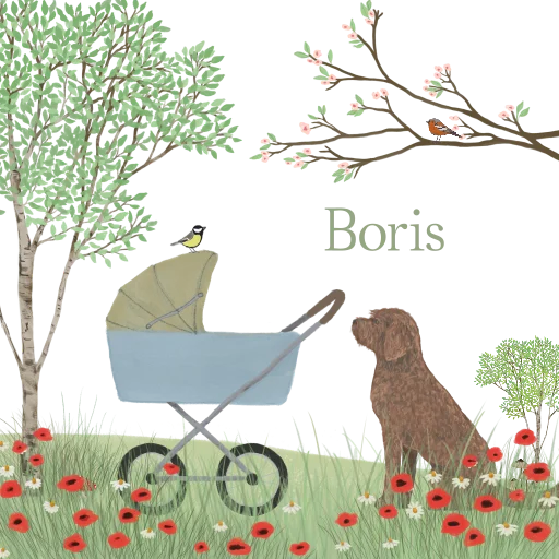 Tegeltje kinderwagen Labradoodle klaprozen lente