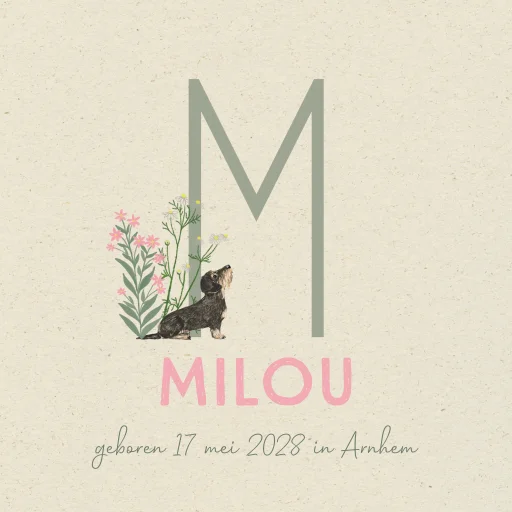 Een lief tegeltje met een ruwharige teckel. Een prachtige herinnering voor je kindje. Je kunt het tegeltje zelf helemaal naar wens maken in de editor. Formaat: 15x15 cm.