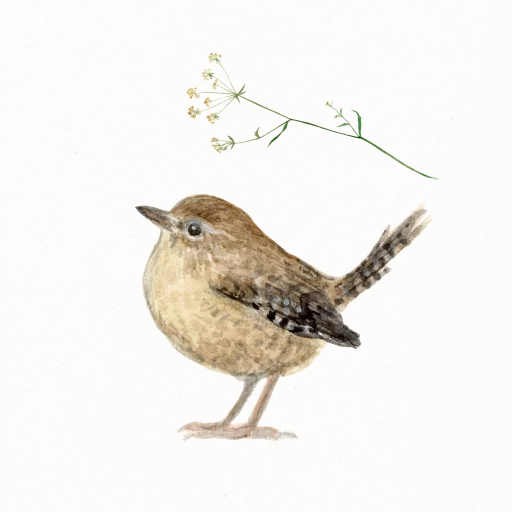 Tegeltje Winterkoninkje en schermbloem waterverf