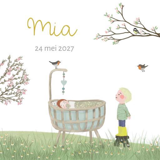 Tegeltje Zusje broertje rotan wiegje lentebloesem