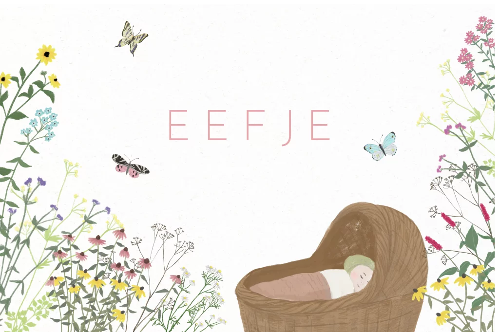 Prachtig raambord (dubbel, liggend) met de illustratie van een kindje in een rieten mandje tussen vrolijke veldbloemen. Dit raambord is gemaakt van stevig en weerbestendig kunststof (3,5 mm dik kanaalplaat). Het ontwerp wordt op beide zijden aangebracht en is eenvoudig op het raam te bevestigen met een plakrand.