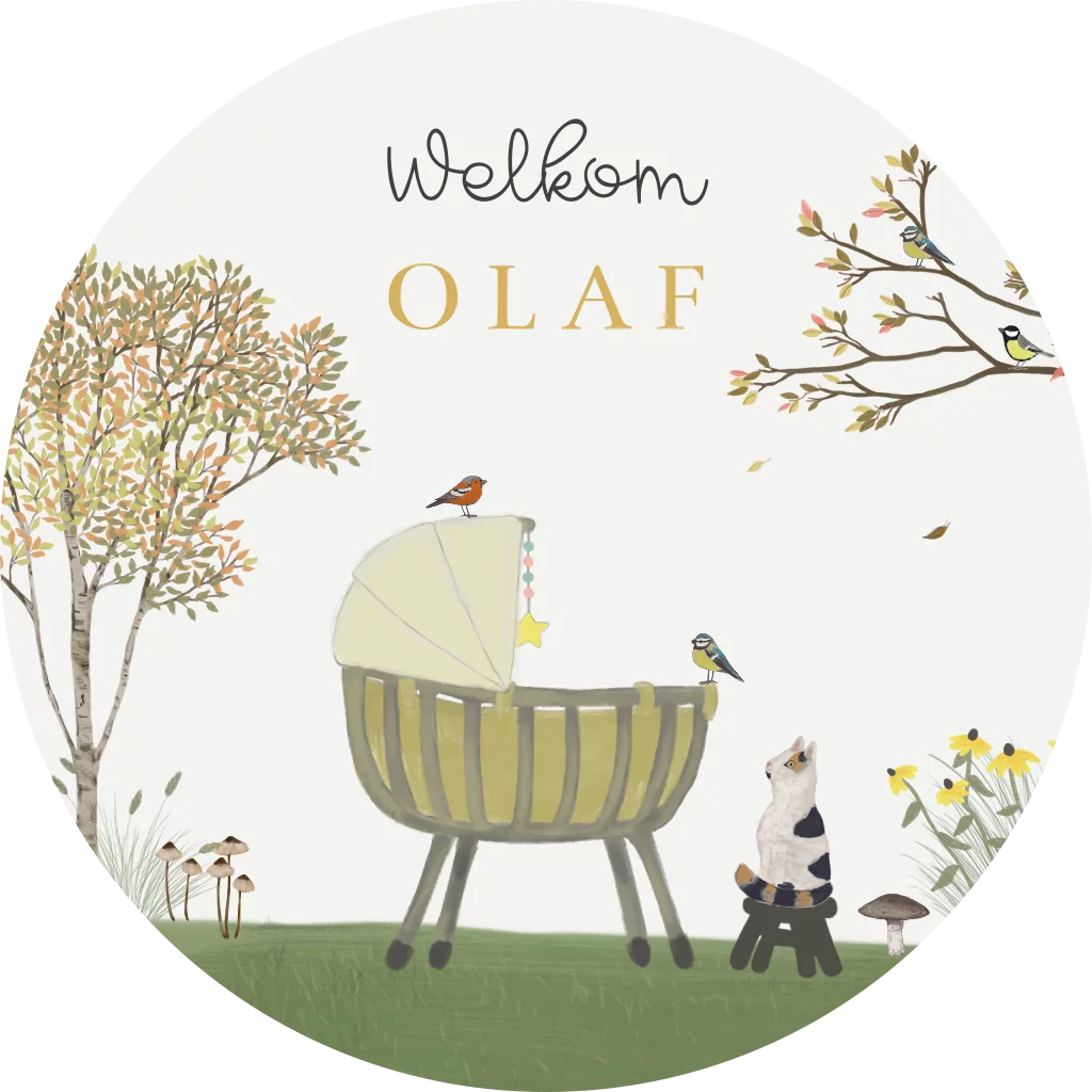 Super leuk geboortebord voor in je tuin met een trotse lapjeskat bij de wandelwagen. Een prachtige bekendmaking van de geboorte van je kindje. Je kunt het tuinbord zelf personaliseren in de editor. Exclusief paal en bevestigingsmateriaal.