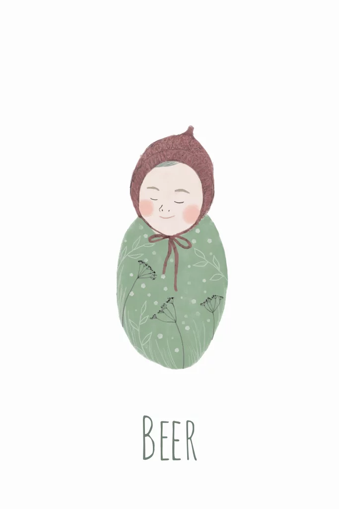 Prachtig geboortekaartje van een lief slapend kindje in een doek.