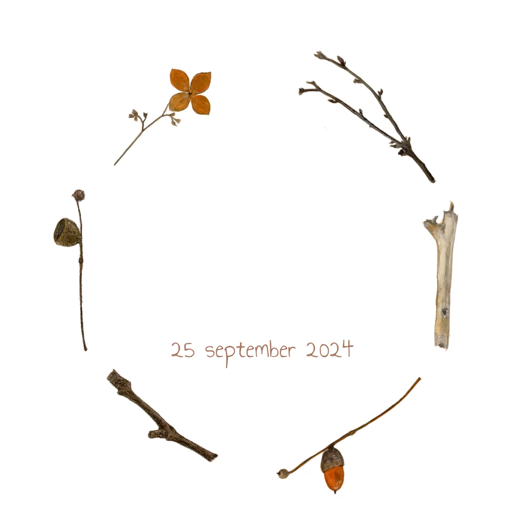 Prachtig geboortekaartje met herfsttakjes en glinsterend zilverfolie.