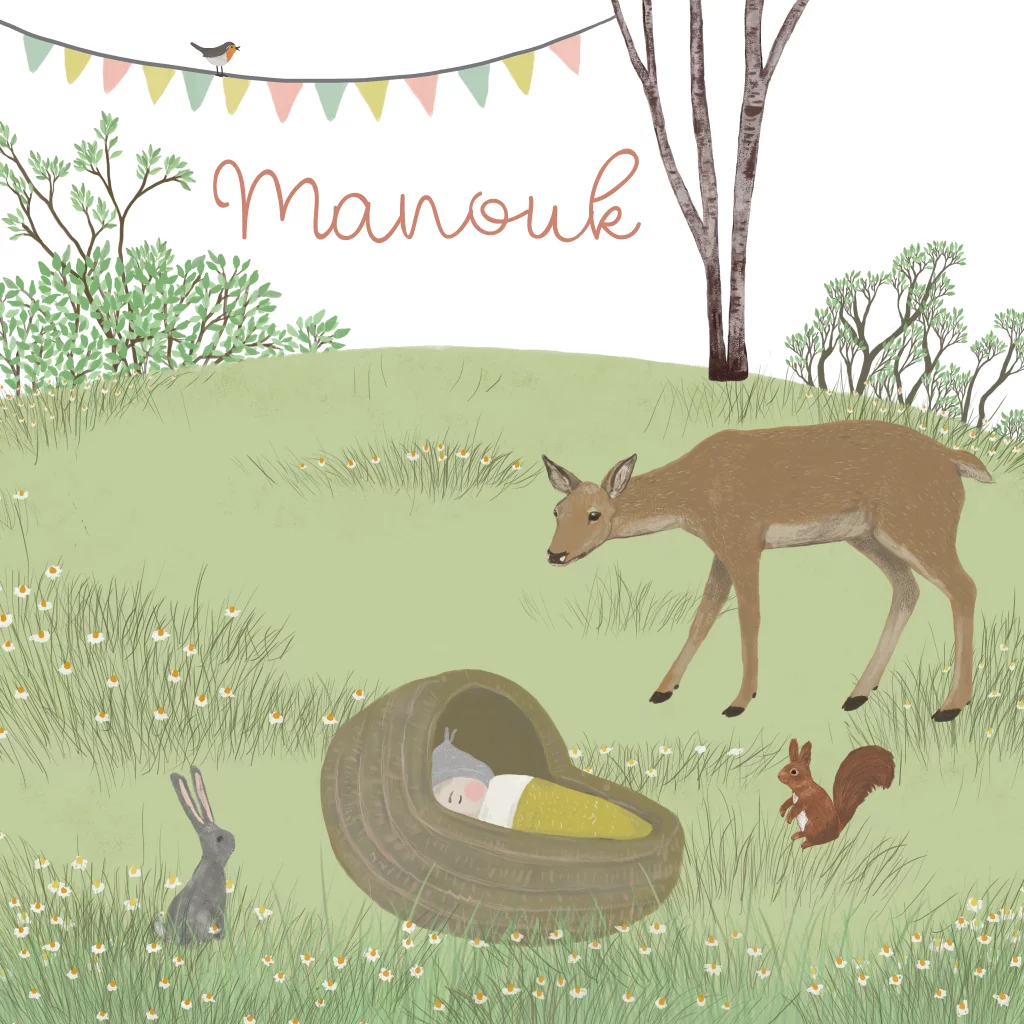 Dit geboortekaartje met illustraties van bosdieren is een prachtige keuze voor de aankondiging van de geboorte van je kindje. De illustraties en teksten van dit kaartje zijn eenvoudig aan te passen waardoor je een uniek en persoonlijk kaartje creëren.