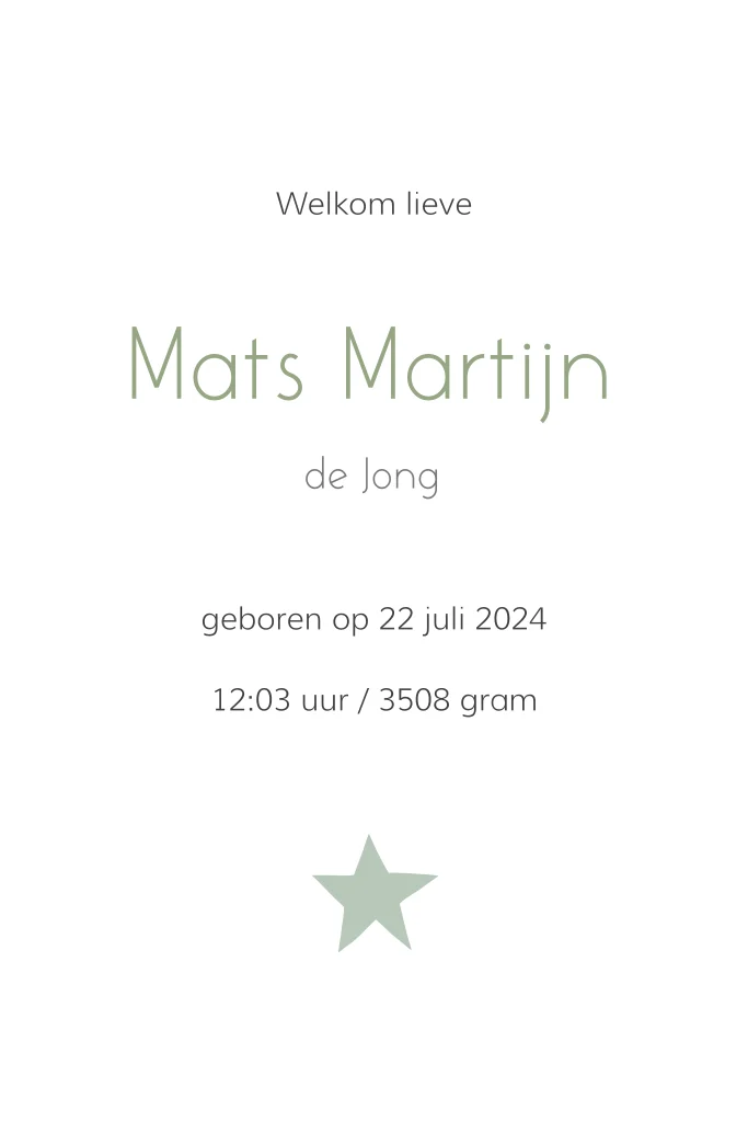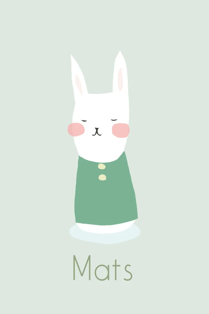 Lief geboortekaartje met een konijntje. Je kunt de kaart zelf helemaal naar wens maken in de editor. Niet alleen de lettertypes en -kleuren kun je aanpassen, maar je kunt ook (bijna) alle illustraties vervangen of illustraties en je eigen foto’s toevoegen! Mix & match!