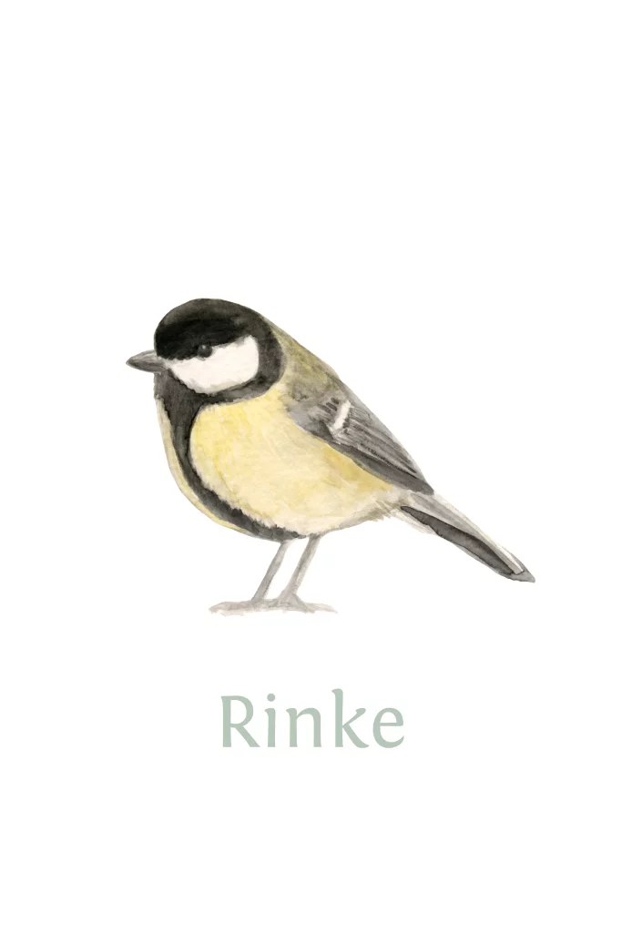 Geboortekaartje met een koolmeesje. De originele illustratie is geschilderd met aquarel. Je kunt de kaart zelf helemaal naar wens maken in de editor. Niet alleen de lettertypes en -kleuren kun je aanpassen, maar je kunt ook (bijna) alle illustraties vervangen of illustraties en je eigen foto’s toevoegen! Mix & match! Mocht je er niet uit komen of vragen hebben, neem gerust contact op.