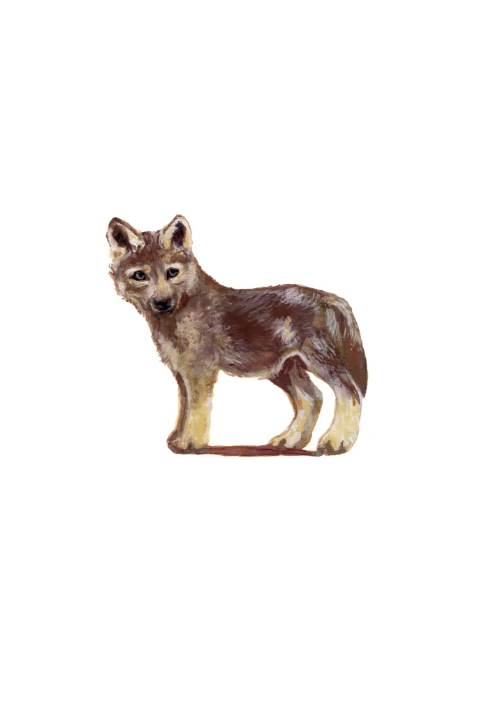 Mooie poster met een illustratie van een jonge wolf. De originele illustratie is geschilderd met gouache. Maak dit kaartje helemaal naar wens in de editor.